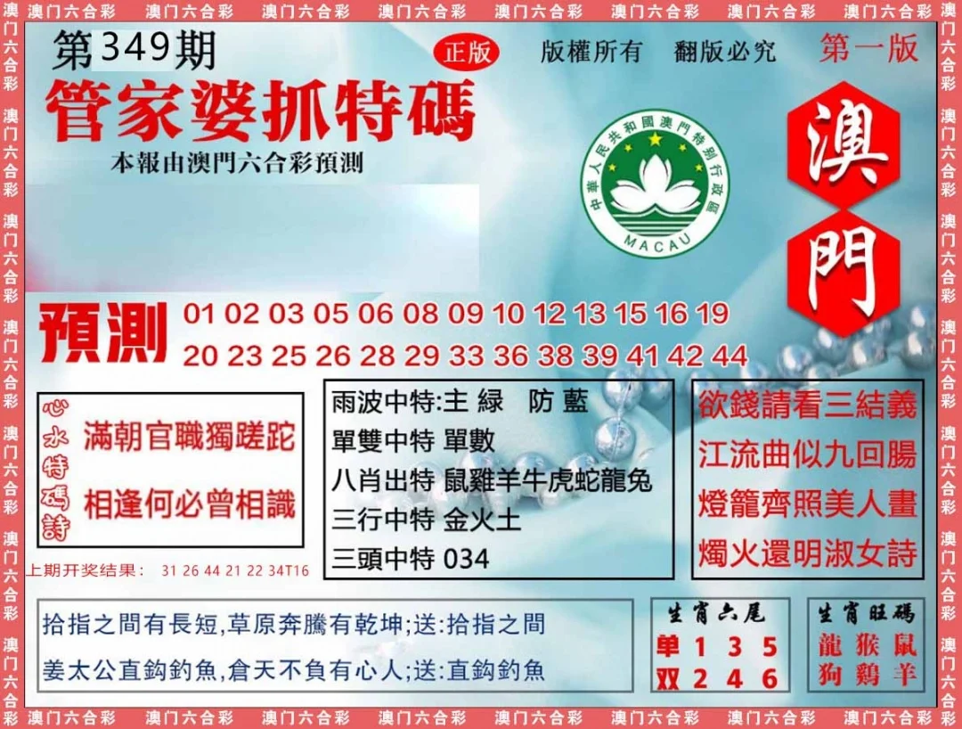 第349期:澳门白小姐【最准平特一肖王】→准确率100%